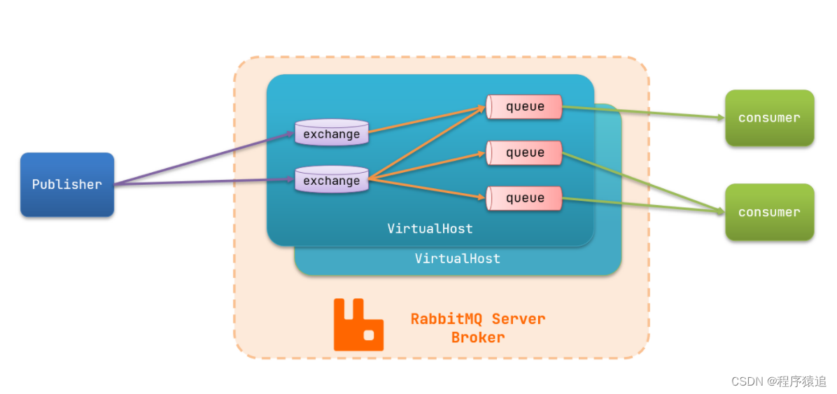 publisher:消息发布者,将消息发送到队列queue