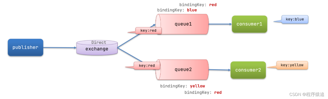 Direct交换机根据RoutingKey判断路由给哪个队列