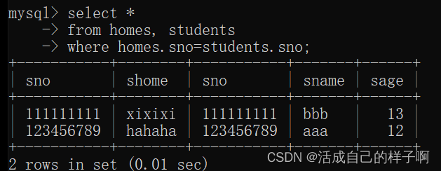where homes.sno=students.sno;
