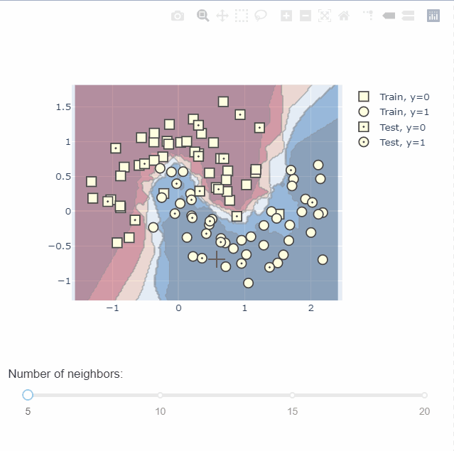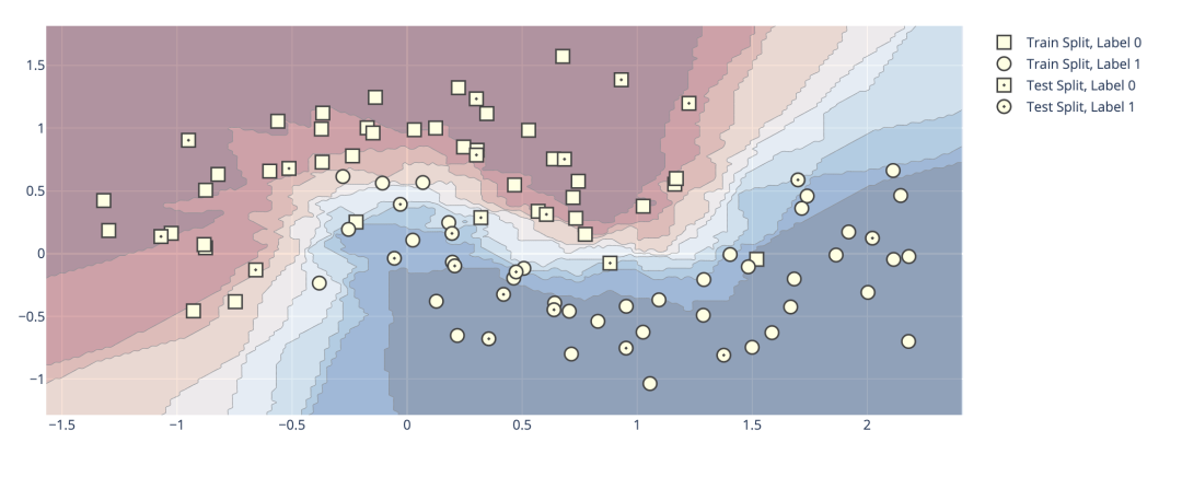 通过plotly中的dash还可以绘制交互图,不同参数下不同的决策边界,无疑给我们理解模型提供了一个很好的帮手。具体绘图过程可以到官网查看,这里不做过多的介绍。