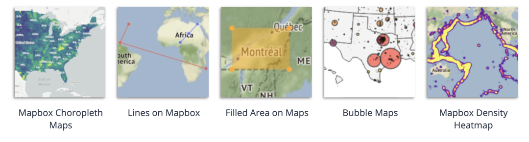 平铺地图: scatter_mapbox, line_mapbox, choropleth_mapbox, density_mapbox