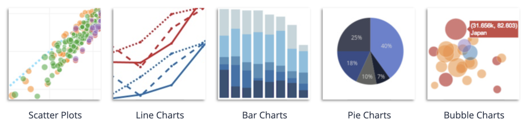 基础图形: scatter, line, area, bar, funnel, timeline