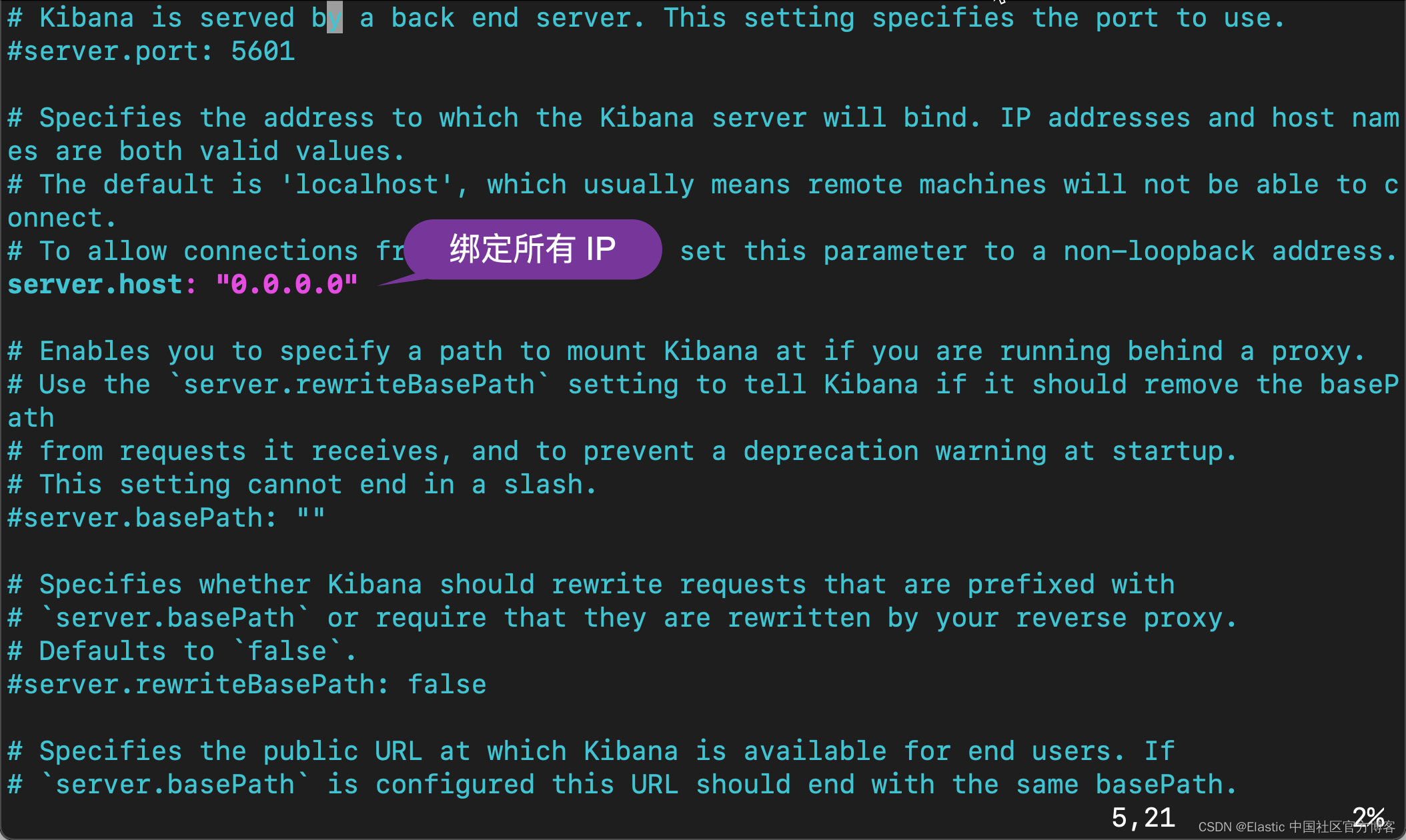 我们接下来需要针对 kibana.yml 文件进行配置: