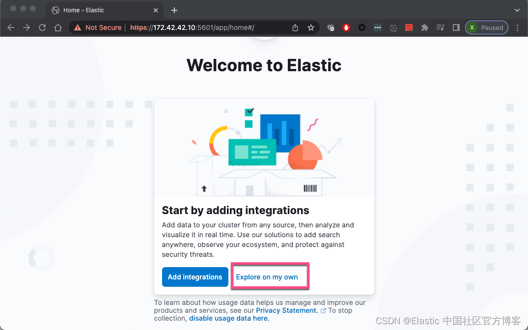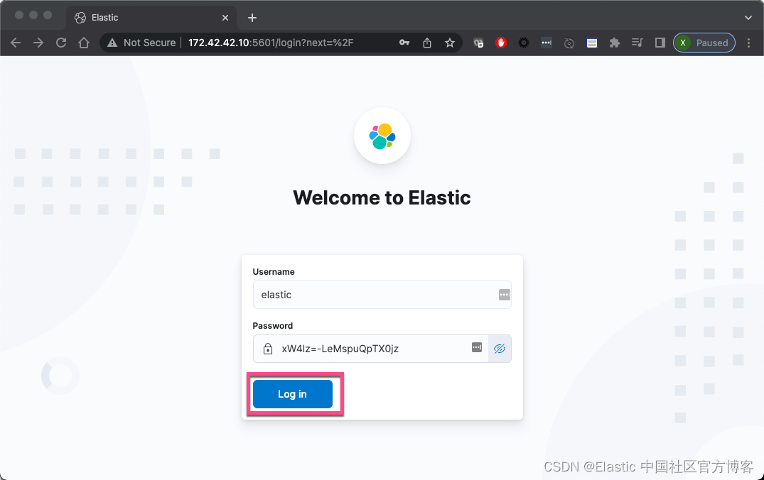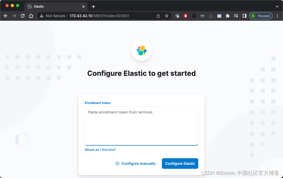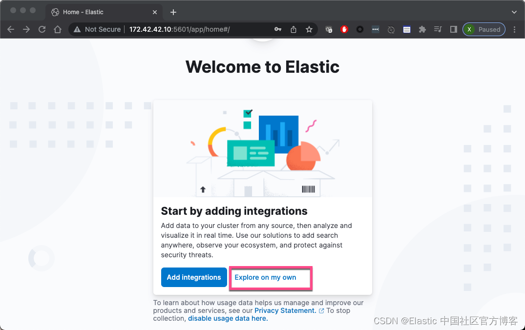 如上所示,我们可看到让我们去启动 Kibana 的链接。我们在浏览器中输入地址:http://172.42.42.10:5601/?code=203501