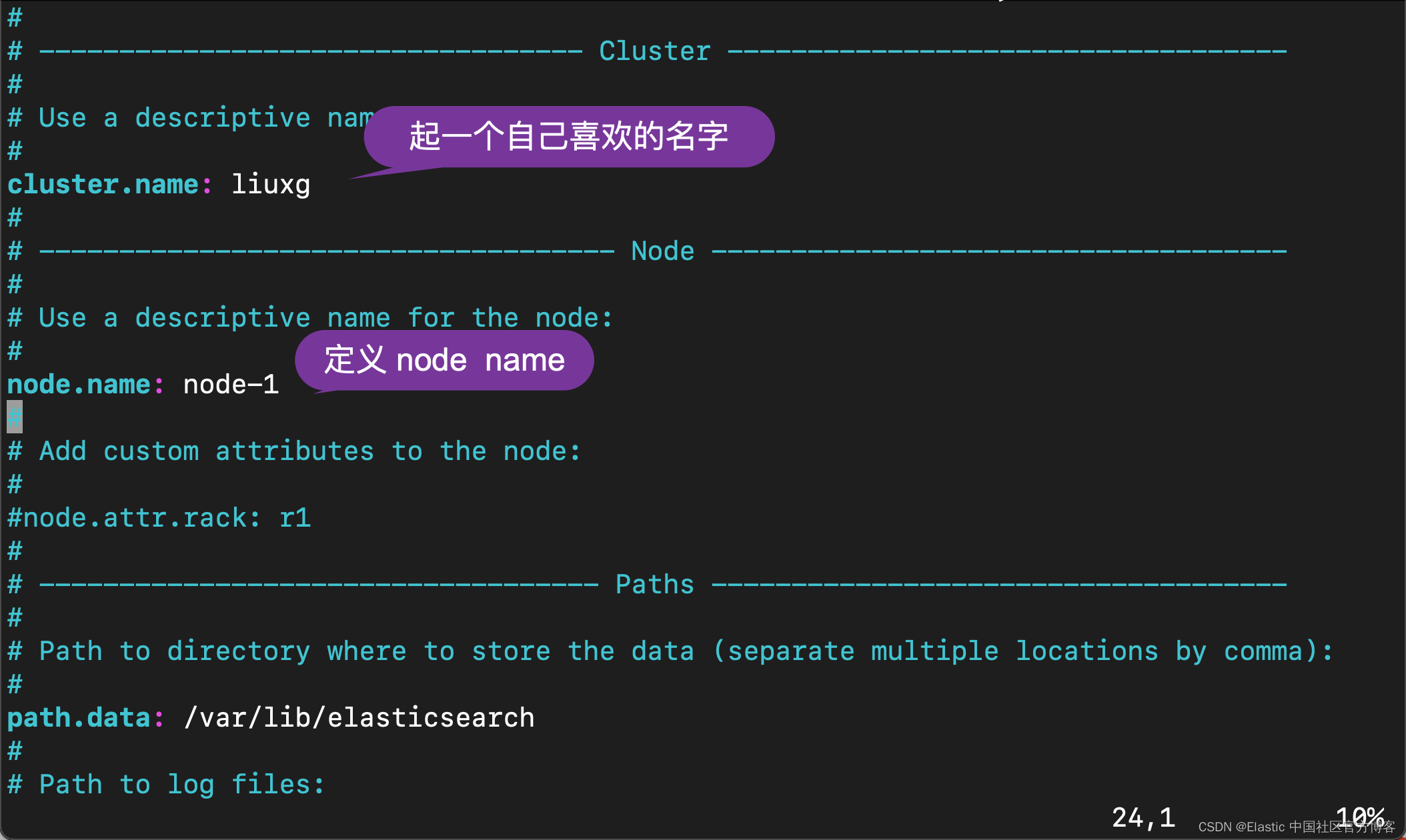 我们需要针对 es2 上的 elasticsearch.yml 进行一些配置: