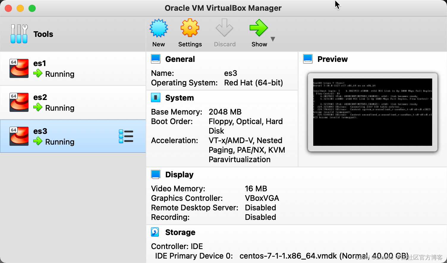 es3 running (virtualbox)This environment represents multiple VMs. The VMs are all listed
