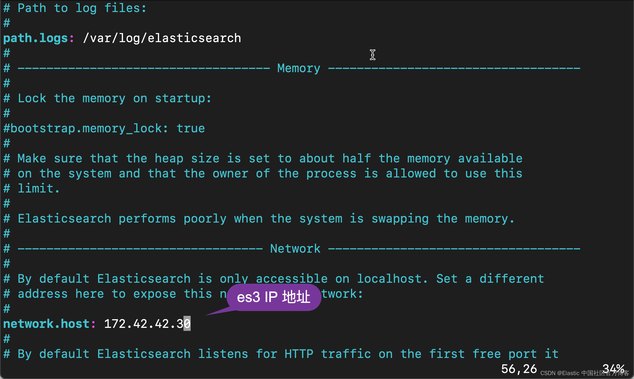 如法炮制,我们需要针对 es3 做同样的配置。只不过我们需要为它取另外一个名字 node-3。我们也需要把它的 IP 地址填入进去。