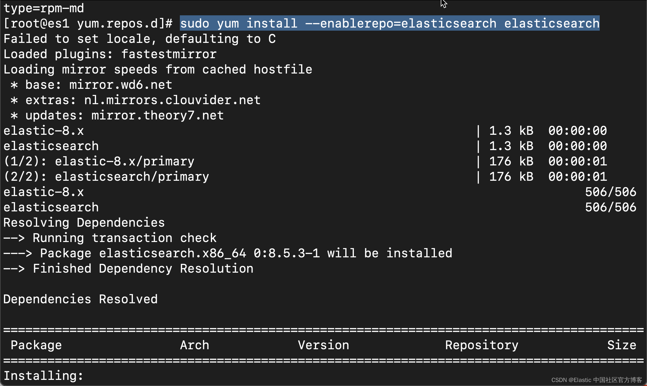 我们接下来使用如下的命令来安装 Elasticsearch: