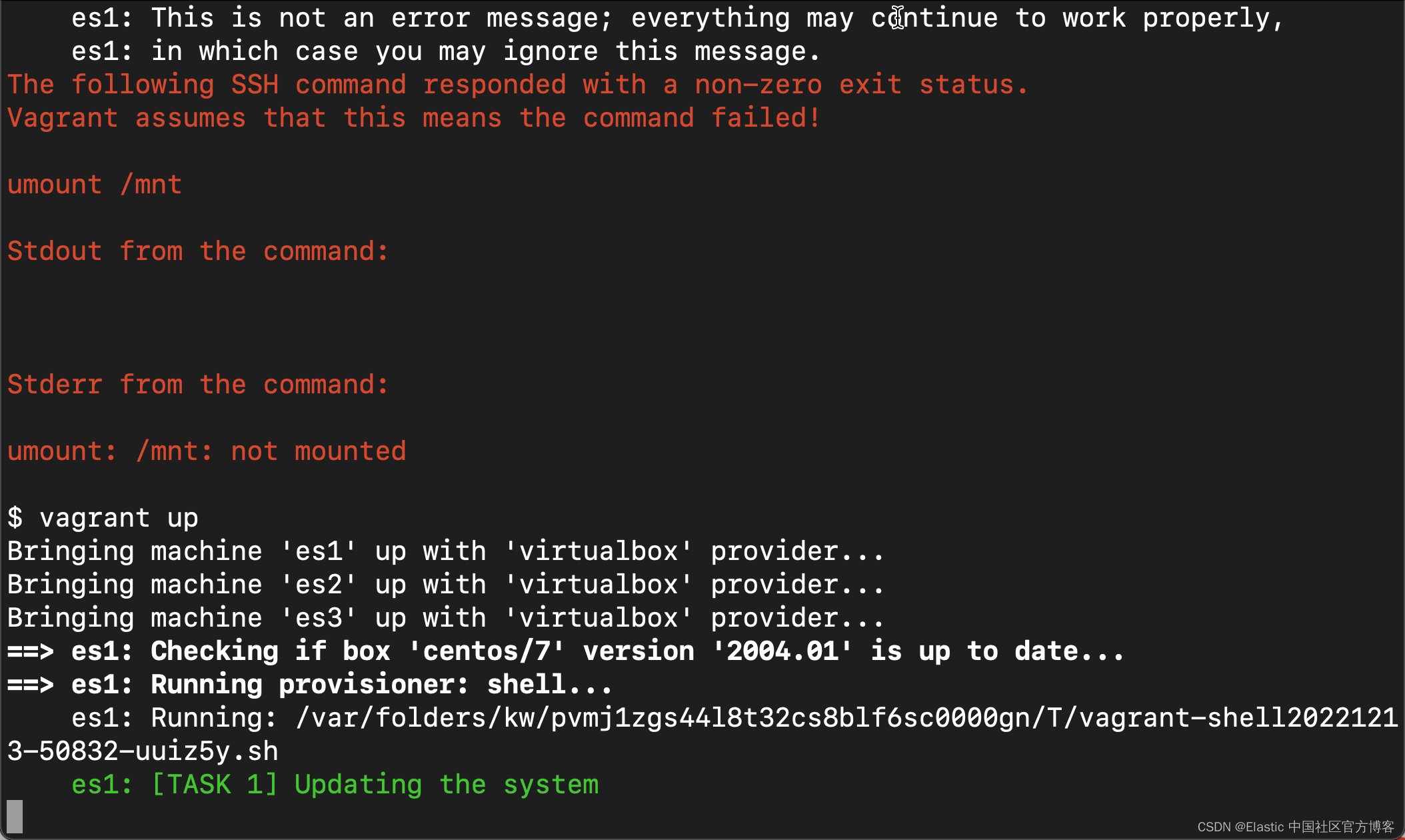 如果你遇到上面的错误信息,你可以继续使用上面的 vagrant up 命令运行: