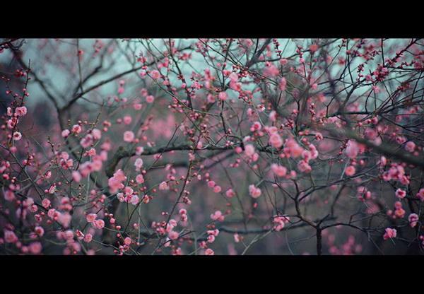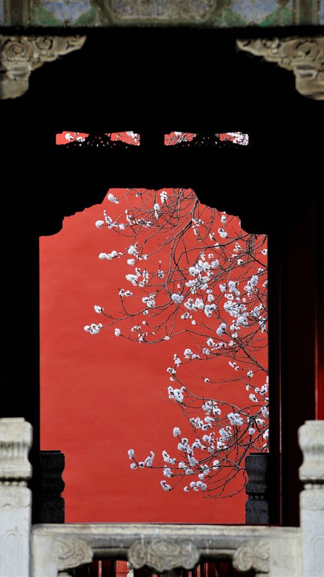 斑驳的一面墙,一枝梅花垂落在墙面上,我们以墙为背景拍这枝花,简洁的画面会十分地突出这枝梅花的姿态。整个画面看起来甚至还有一丝孤独的伤感美,这就是留白的增值效果。