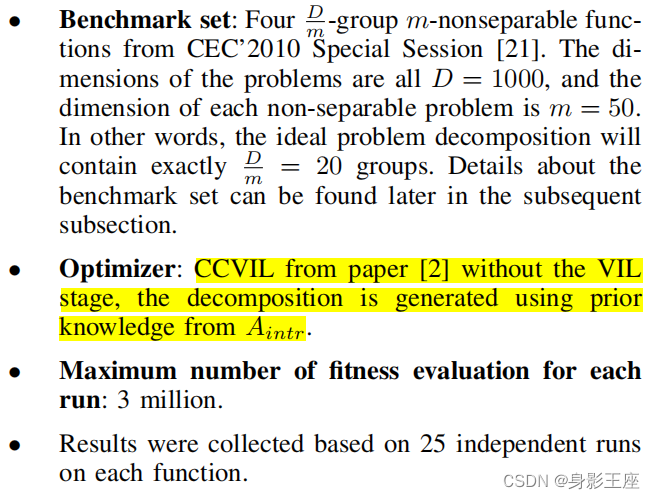 Chen W, Tang K. Impact of problem decomposition on cooperative coevolution[C]//2013 IEEE Congress on Evolutionary Computation. IEEE, 2013: 733-740.