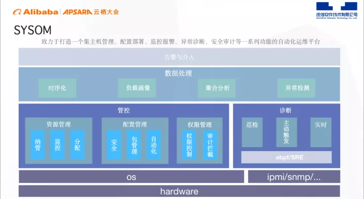 sysOM致力于打造一个集主机管理、配置部署、监控报警、异常诊断、安全审计等一系列功能的自动化运维平台。目前我们对资源管理做了纳管、监控,对配置管理做了安全、包管理、自动化,对权限管理做了权限细分、审计拦截,也实现了主动诊断。