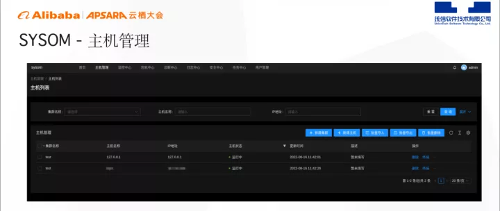 上图为SYSOM的主机管理图,可以做主机的批量导入、导出、删除,也可以根据集群做分门别类的梳理,支持在线终端,为运维人员带来了极大的方便,无需额外安装专门的客户端软件,只需一台电脑,登录SYSOM服务即可直接访问外部终端,达到运维目的。