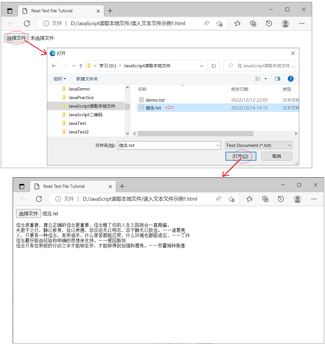 保存文件名为:读入文本文件示例2.html,用浏览器打开显示效果类似上图。