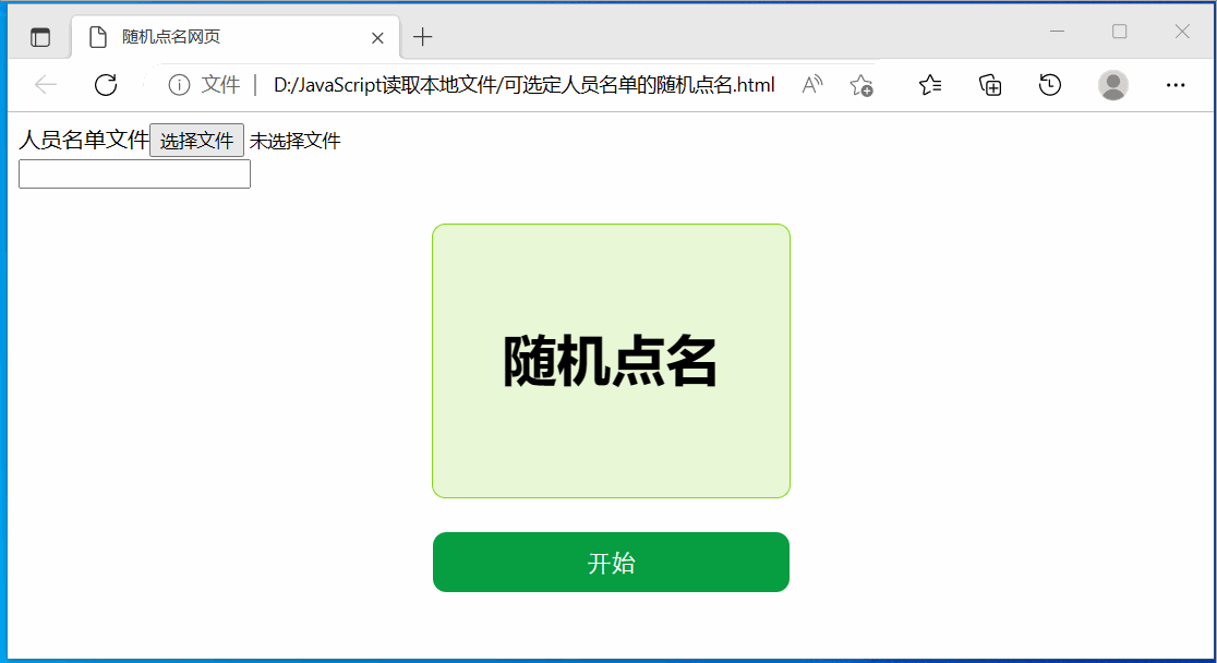 随机点名网页 人员名单文件随机点名开始保存文件名为:可选定人员名单的随机点名.html,用浏览器打开显示效果如下: