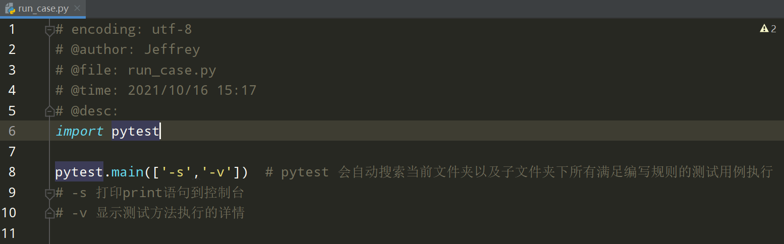 由于pytest.main() 可以自动搜索满足规则的用例,故可以单独新建一个文件用来执行