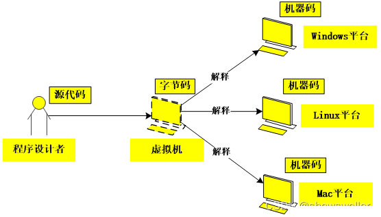 Python是实现了平台无关性的高级程序设计语言,它是在源代码程序与各平台的机器码之间插入了一个虚拟机,也就是说源代码程序不再直接翻译成机器码,而是先编译成虚拟机的字节码,再将字节码解释成各平台可执行的机器码。