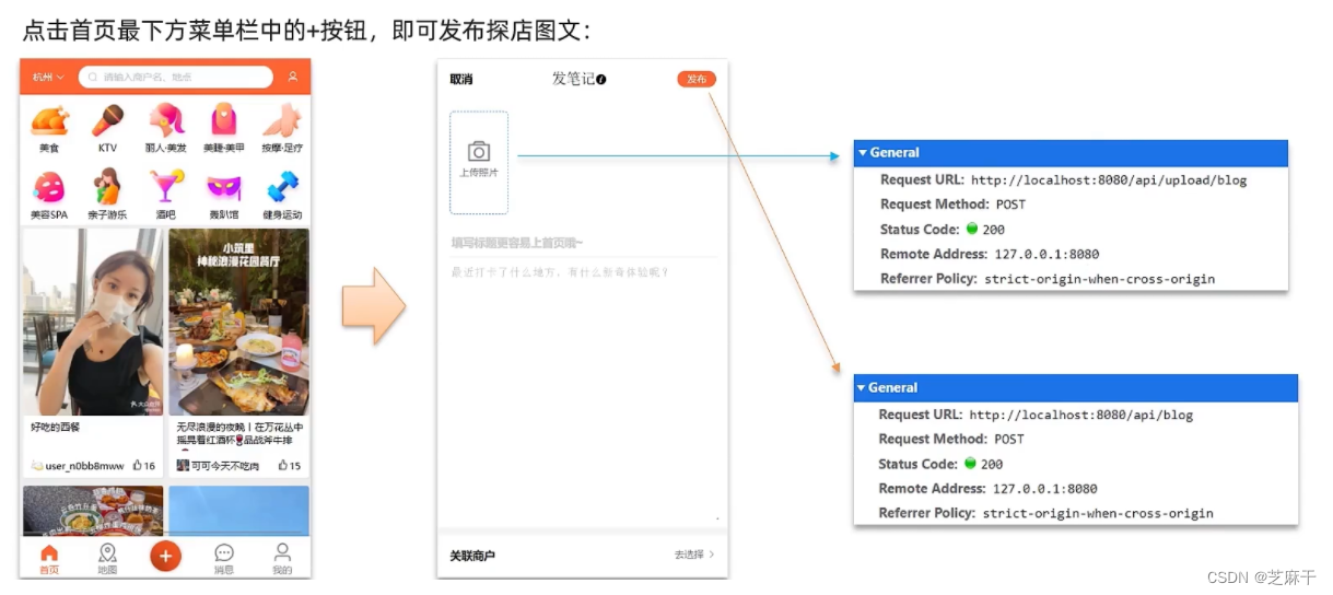 public class BlogController {@Resourceprivate IBlogService blogService;@PostMappingpublic Result saveBlog(@RequestBody Blog blog) {//获取登录用户UserDTO user = UserHolder.getUser();blog.setUpdateTime(user.getId());//保存探店博文blogService.saveBlog(blog);//返回idreturn Result.ok(blog.getId());}