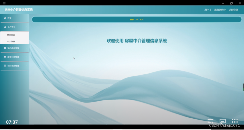 用户登录进入系统可以对首页、个人中心、预约看房管理、租赁订单管理、合同信息管理等功能进行相应操作,如图5-12所示。