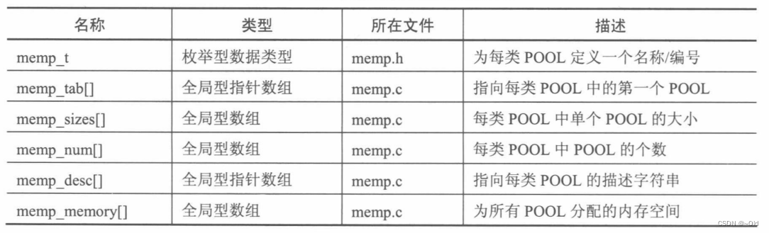 {u16_t i;/*遍历需要多少个内存池: */for (i = 0; i < LWIP_ARRAYSIZE(memp_pools); i++) {memp_init_pool(memp_pools[i]);#if LWIP_STATS && MEMP_STATSlwip_stats.memp[i] = memp_pools[i]->stats;