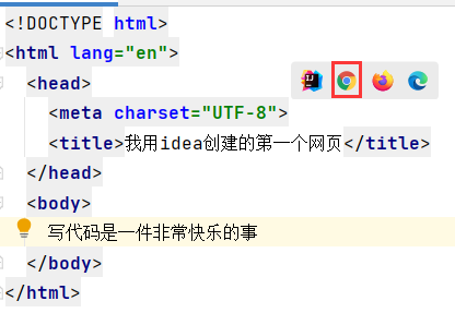 4、写代码,然后点击右上角的谷歌图标到浏览器