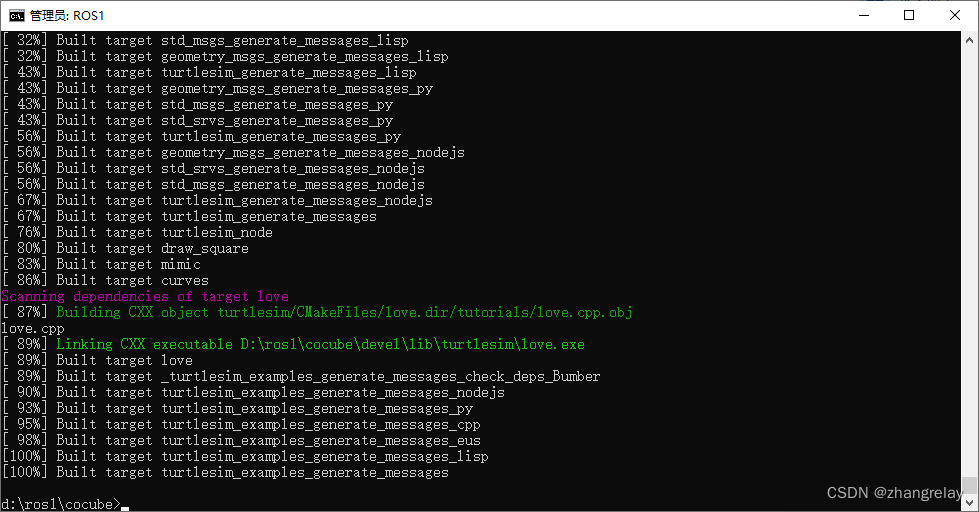 Scanning dependencies of target love Building CXX object turtlesim/CMakeFiles/love.dir/tutorials/love.cpp.obj love.cpp Linking CXX executable D:\ros1\cocube\devel\lib\turtlesim\love.exe