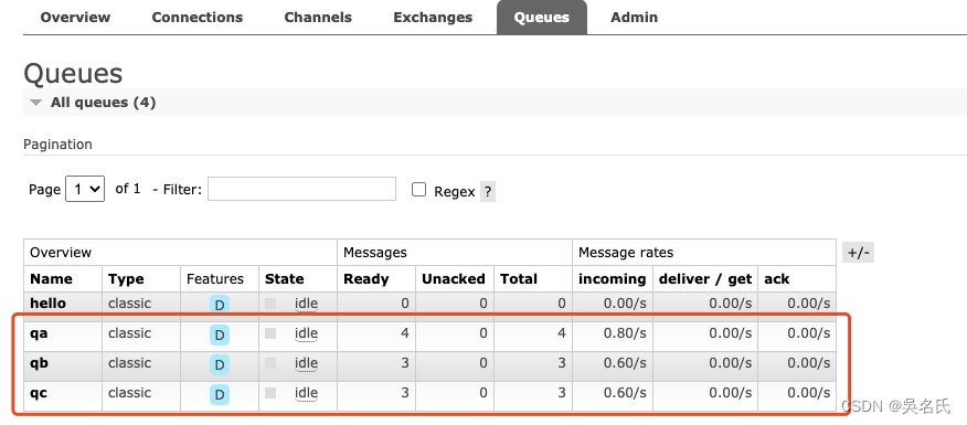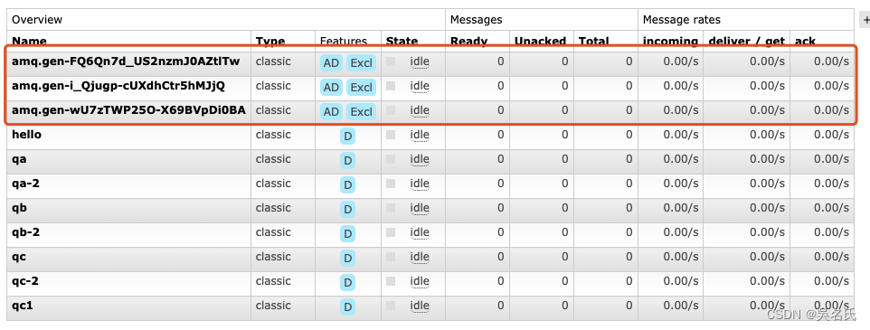 有个疑问:这个队列的名称qa、qb和qc是RabbitMQ自动生成的么,我们可以指定队列名称么?