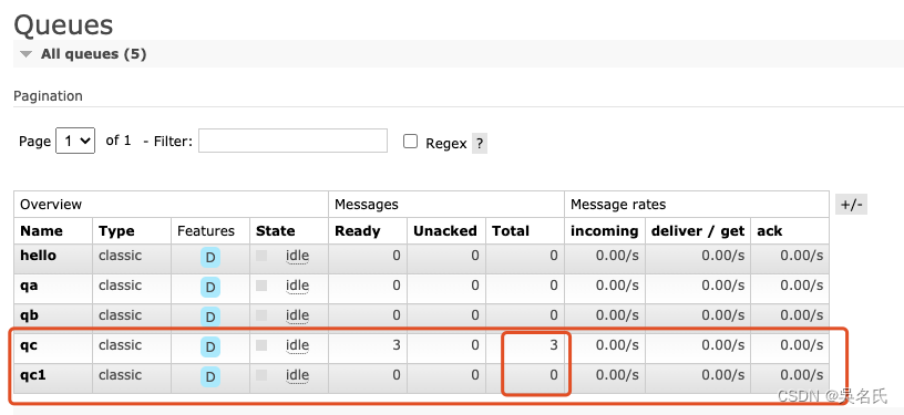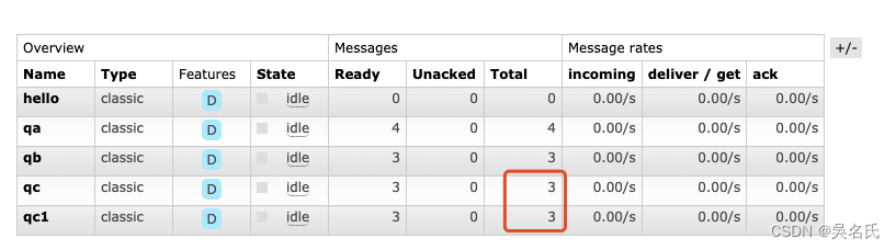 public static void main(String[] args) throws InterruptedException {DirectConsumer consumer = new DirectConsumer();String[] routingKey = new String[]{"aaa", "bbb", "ccc"};String[] queueNames = new String[]{"qa", "qb", "qc1"}; // 将qc修改为qc1for (int i = 0; i < 3; i++) {consumer.msgConsumer(queueNames[i], routingKey[i]);}Thread.sleep(1000 * 60 * 100);