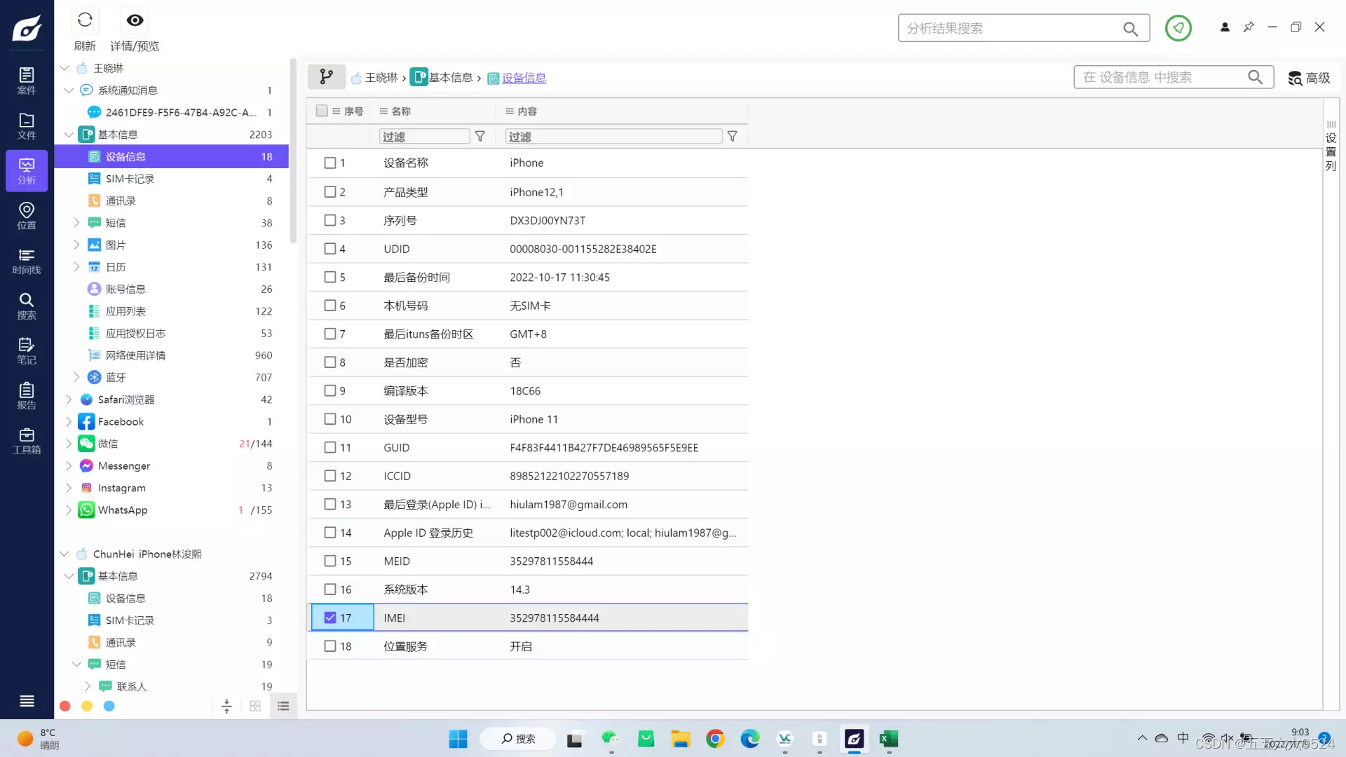 61. [填空题] 王晓琳手机的IMEI号是什么?(以阿拉伯数字回答)(1分)