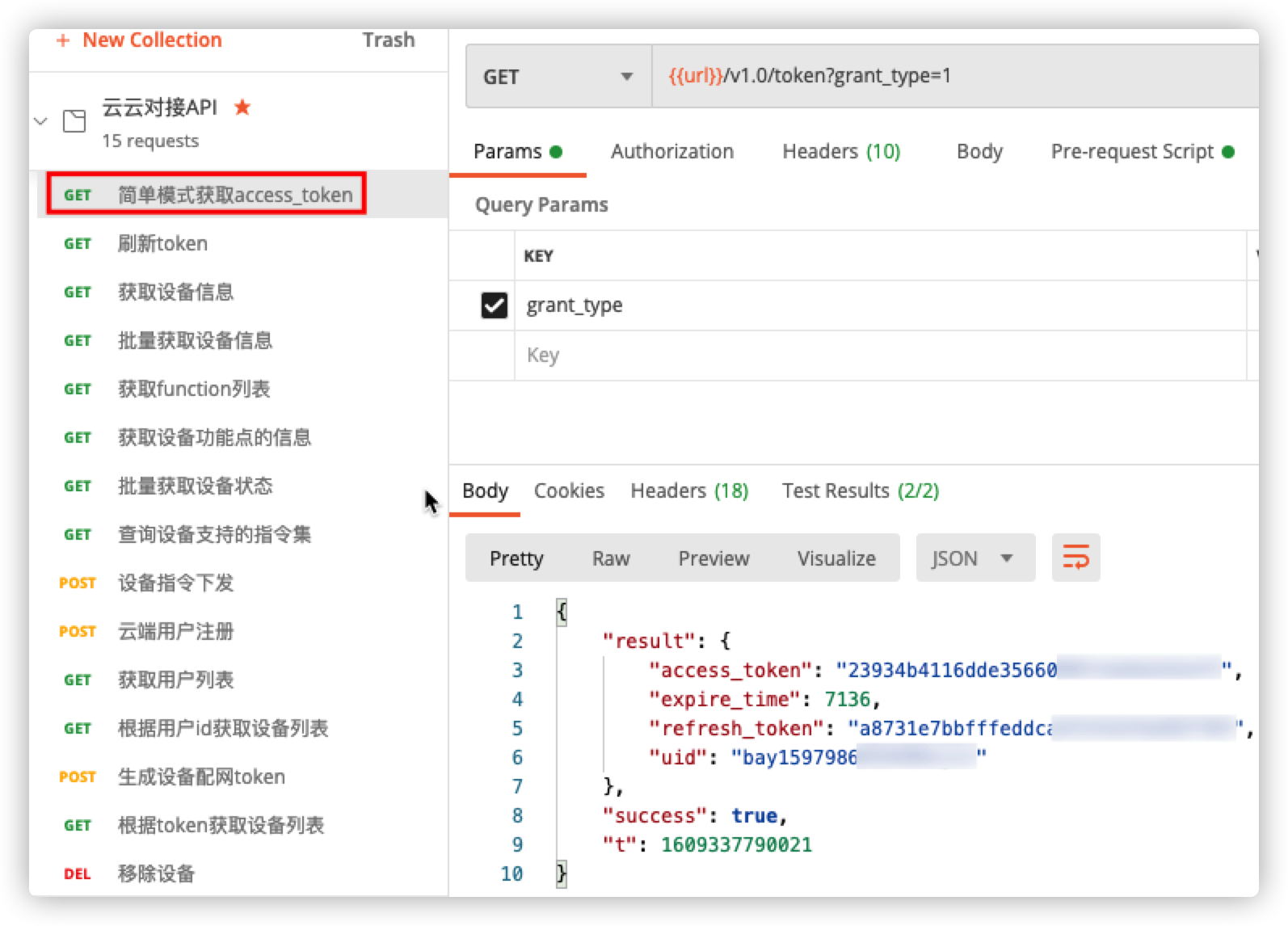 通过简单模式获取 access_token API,获取 access_token,作为后续调用设备控相关 API 的必要输入。