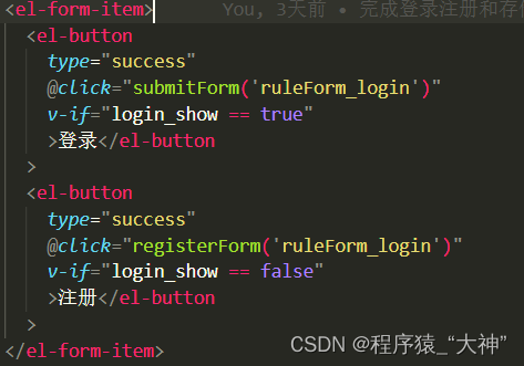v-if判断变量,true显示登录 false显示注册,他们的点击事件用最简单的方式,写两个点击事件