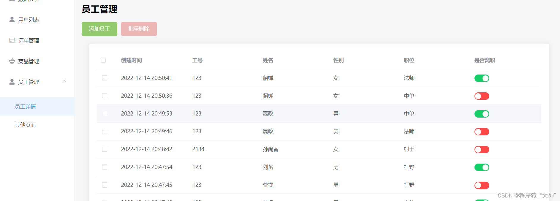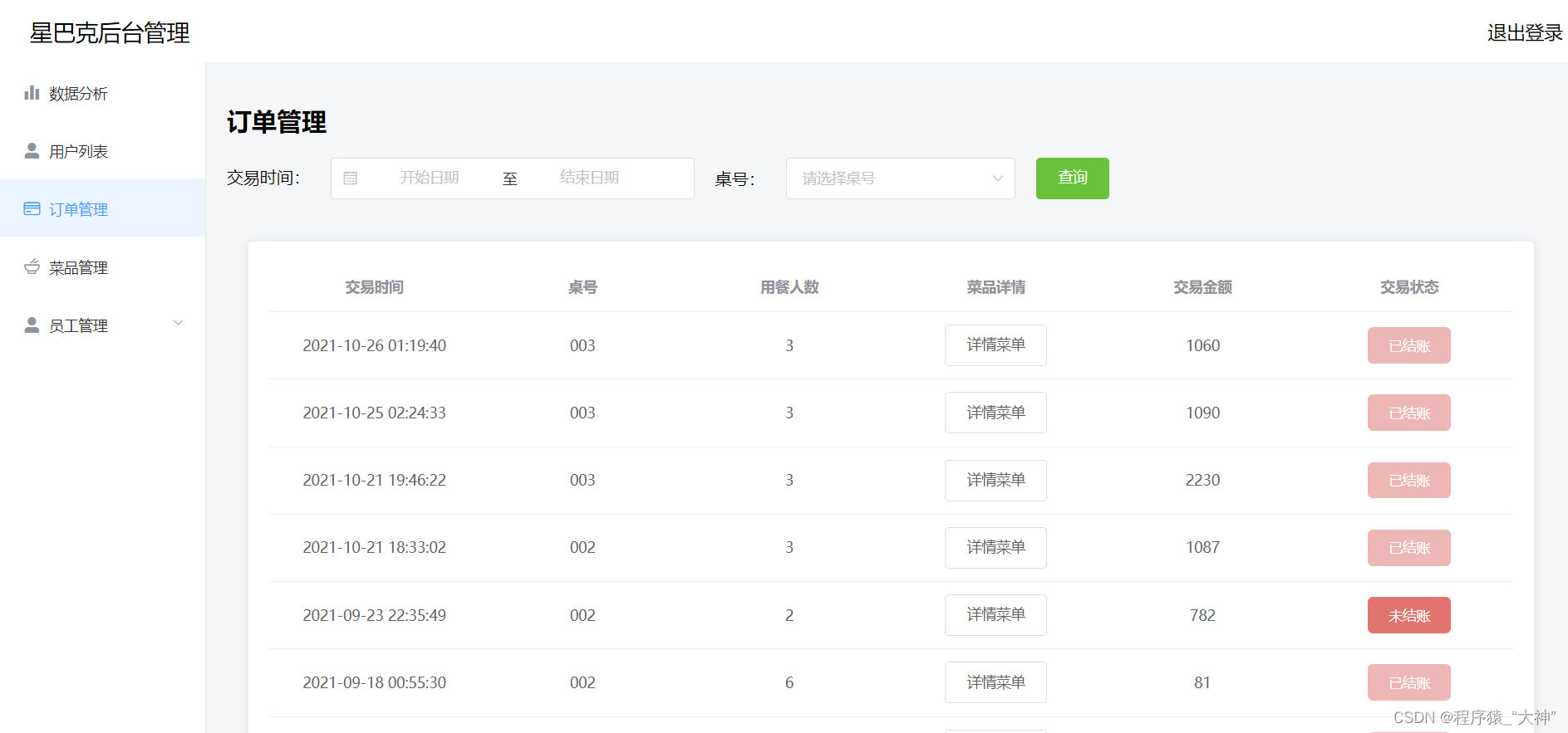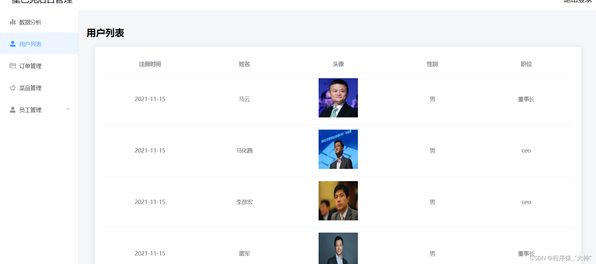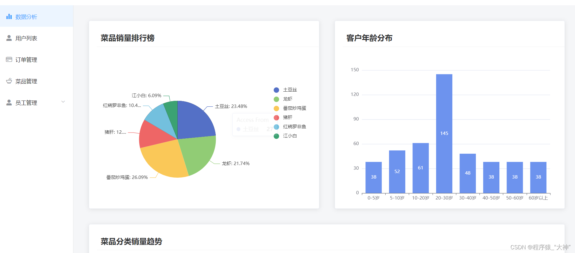 用于每天的菜品数据分析,客户的管理,员工的管理,查看订单信息,菜品的添加或者下架管理