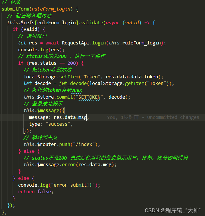 import request from "./request"const RequestApi = {// 登录login(data) {return request({url: "/login",method: "POST",data,})},
