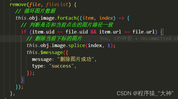 删除图片:on-remove 文件列表移除文件时的钩子