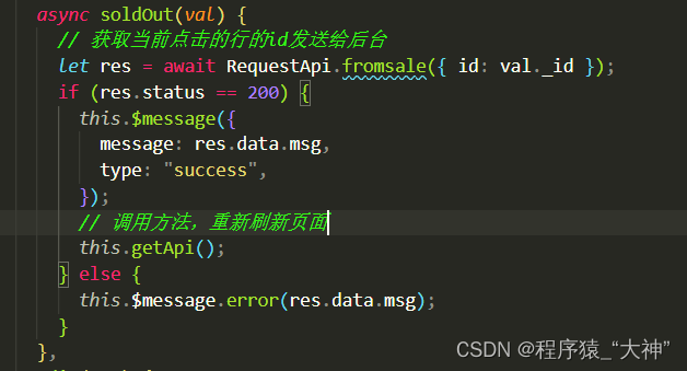 service.interceptors.response.use((response) =>{//关闭loadingendLoading();return response;},(error) => {//对错误请求做些什么const {status} = error.responseif(status == 401){Message.error('用户过期,请重新登录!')localStorage.removeItem("Token")router.push("/login")}//关闭loadingendLoading();//提示信息Message.error(error.response.data.msg)return Promise.reject(error)