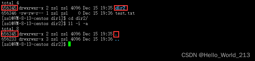 因为, 进入dir2目录时, 会有一个隐藏文件.来表示当前文件, 这时dir2与.都指的是这个目录文件