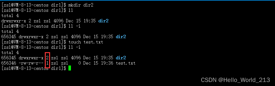 为什么新创建的目录是2, 而新创建的文件是1