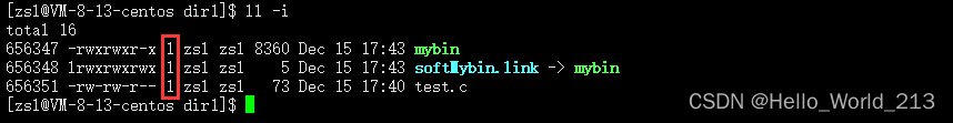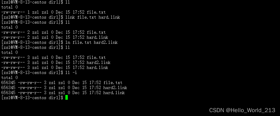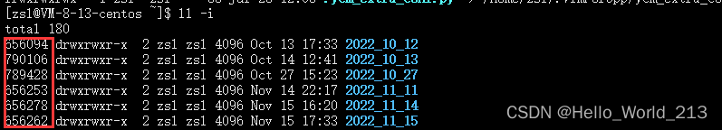 指令: ls -i 查看当前目录下的所有文件inode