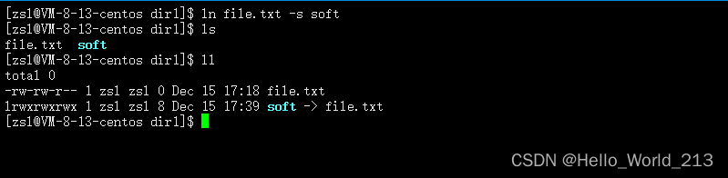 意为: 创建一个file.txt的软链接并命名为soft.link