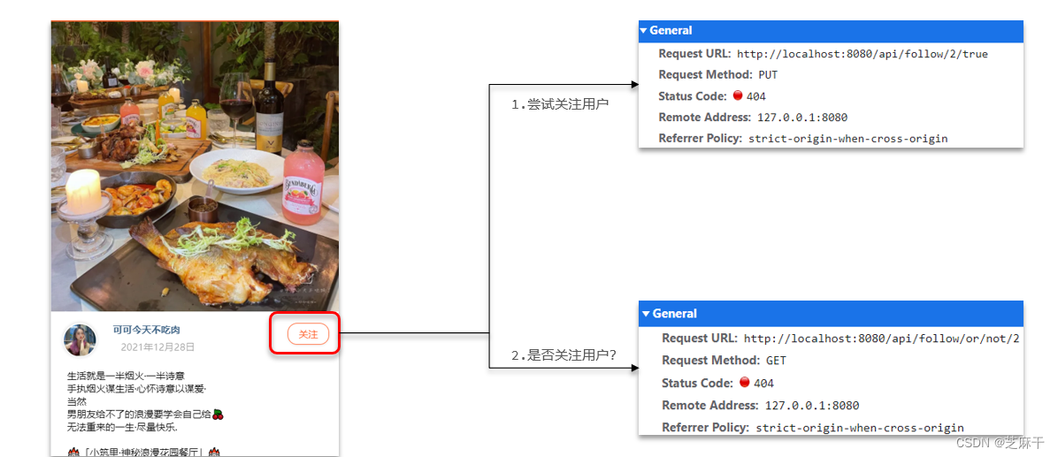 进到探店笔记详情页,会发出两个请求,1是判断是否已经关注,2是尝试关注用户的请求。