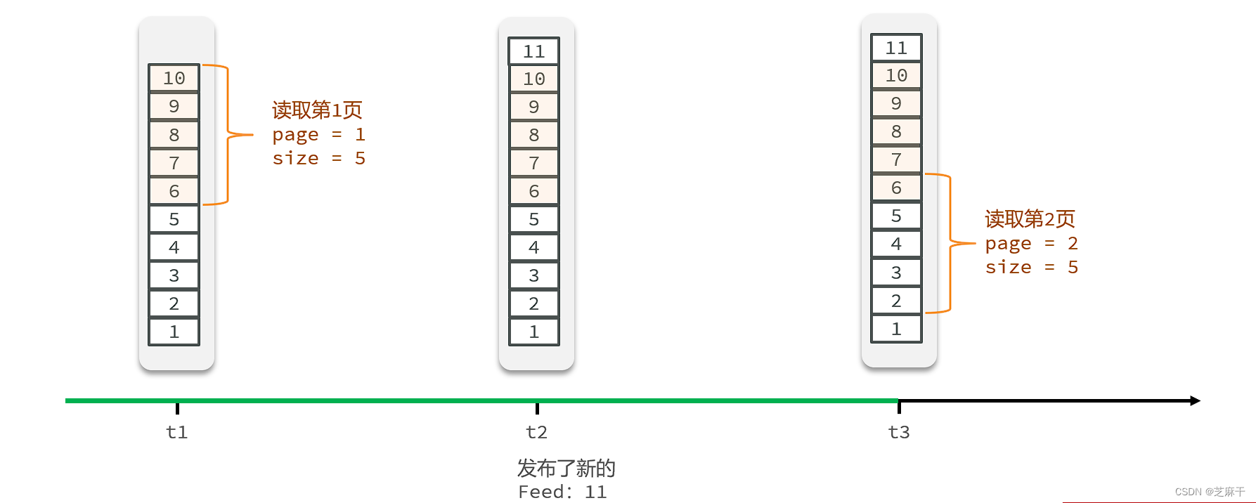 Feed流中的数据会不断更新,所以数据的角标也在变化,因此不能采用传统的分页模式。