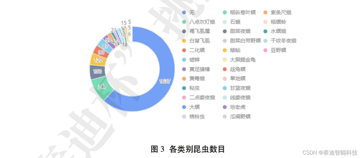 2.1 类别不平衡的问题 在提供的正式数据中,共计 3015 张图片,其中 2213 张图片已经给出了标注样例, 剩余 802 张图片作为测试集,训练集中共出现 28 种昆虫,使用 SPSSSPRO 平台对所 有给出标注结果的图片统计分析,发现严重存在类别不平衡问题,如图 3所示,出现 最多的昆虫是共出现 247 次的八点灰灯蛾,而出现最少的昆虫类别,例如豆野螟只出 现一次,干纹冬夜蛾只出现一次,水螟蛾只出现三次。经过统计,共有 17 种昆虫给出 的标注次数少于 20 次。与此同时,其中 1637 张图片被官方判定为无需标注,即正式 数据标注了这些图片,却没有标注任何昆虫。在 2213 张给出标注的图片中有 1637 张 为负样本,这对模型的训练不利,大大减少了能从正式数据中能够获得的信息。
