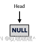 因此创建一个链表,其实就是创建一个指针。因为这个链表一开始没有任何节点。因此,让这个指针指向null 表示当前链表没有任何数据元素。如下: