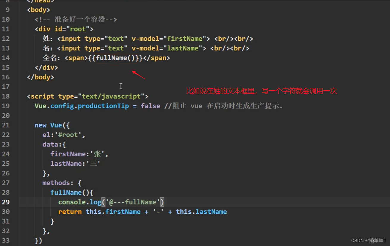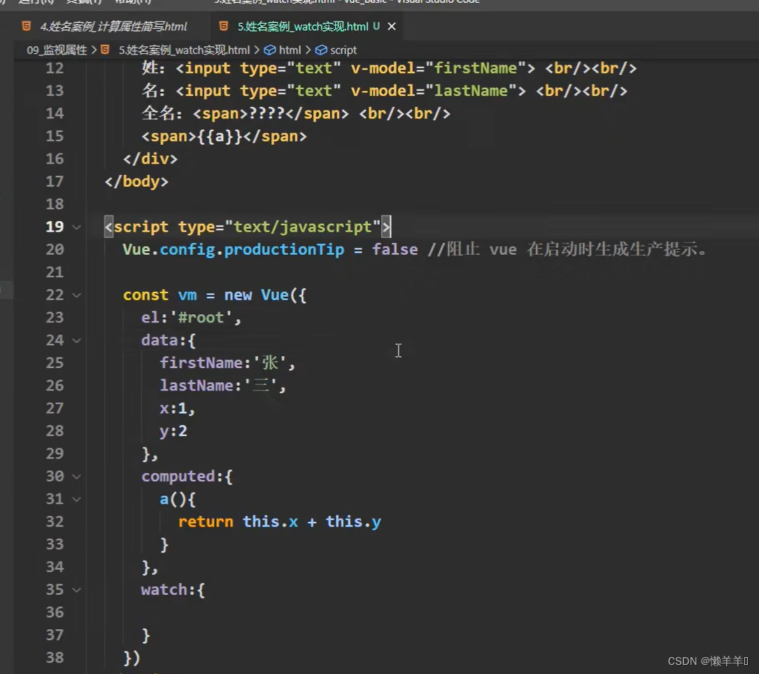 用三种方式实现这个案例:第一个是{{}}、第二个是methods,第三个是计算属性