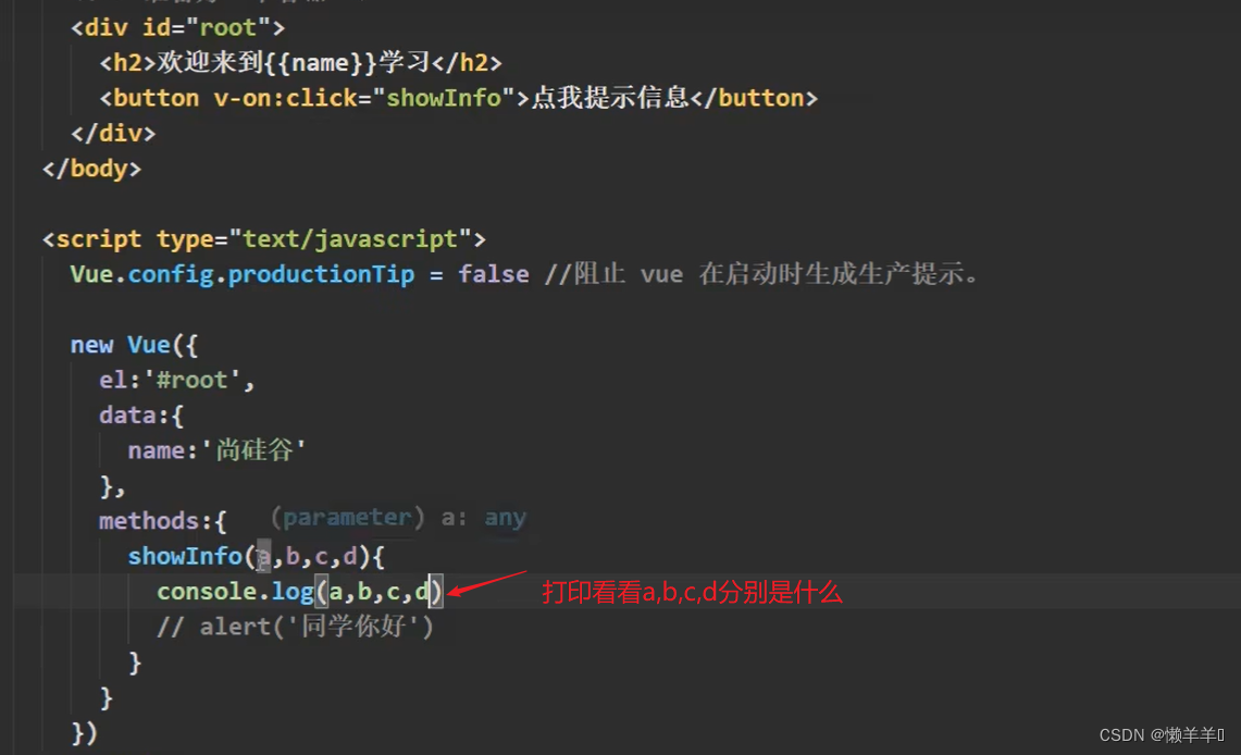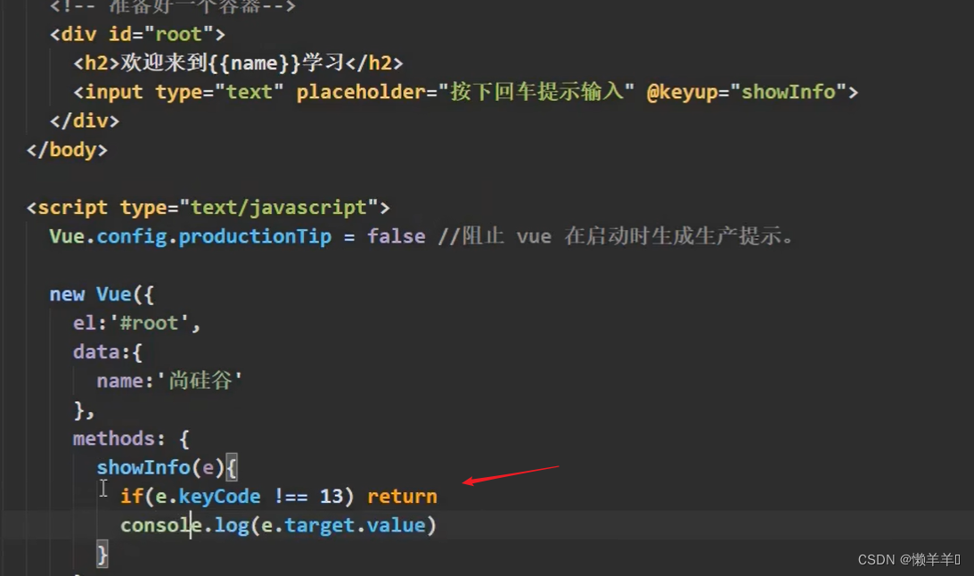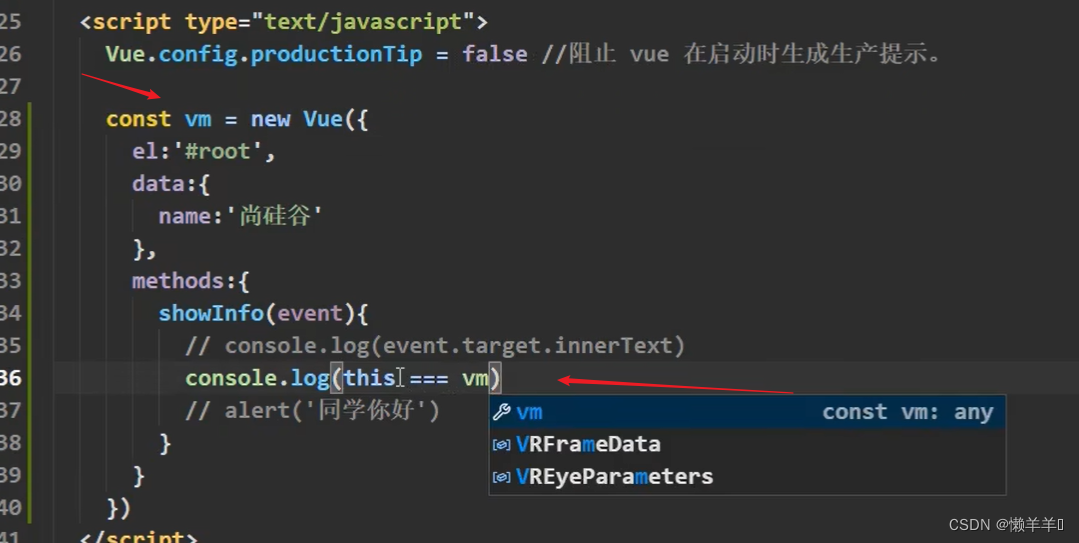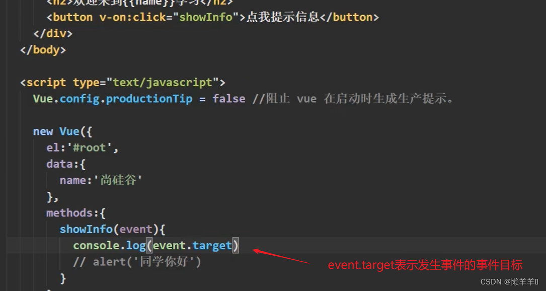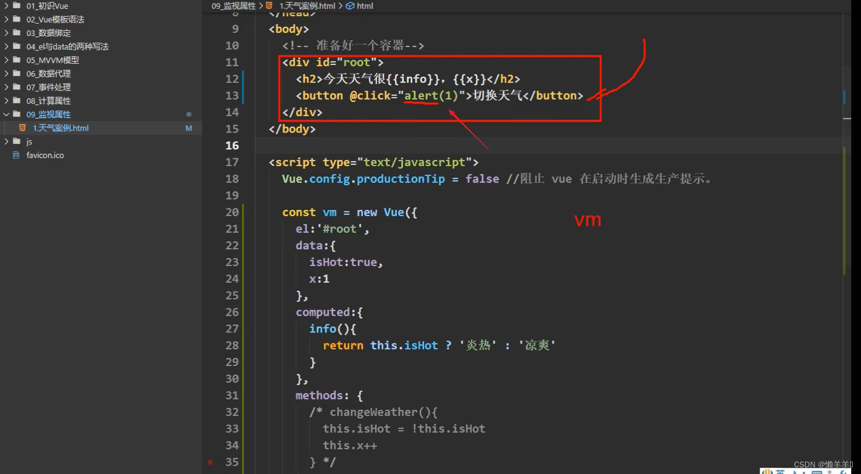 按照上面的写法肯定报错,因为vue的实例找不到alert这个方法