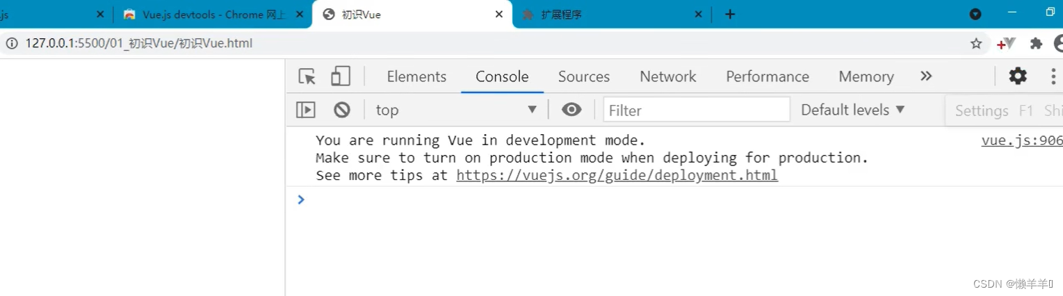 第一个提示:下载vue的开发者工具达到更好的体验,也就是说在浏览器中安装官方推荐的vue开发者工具
