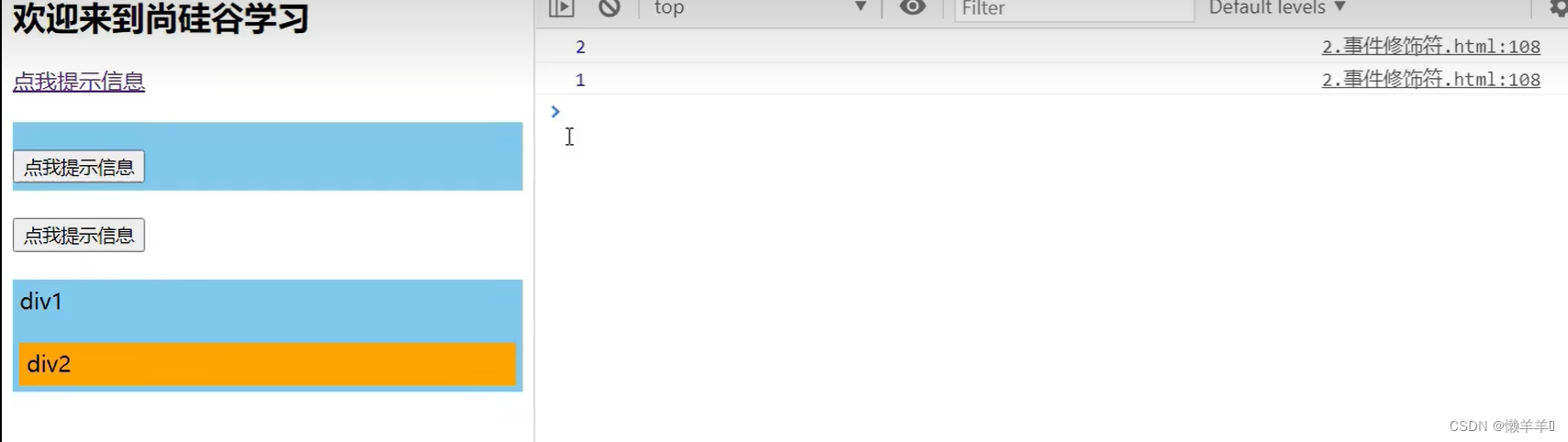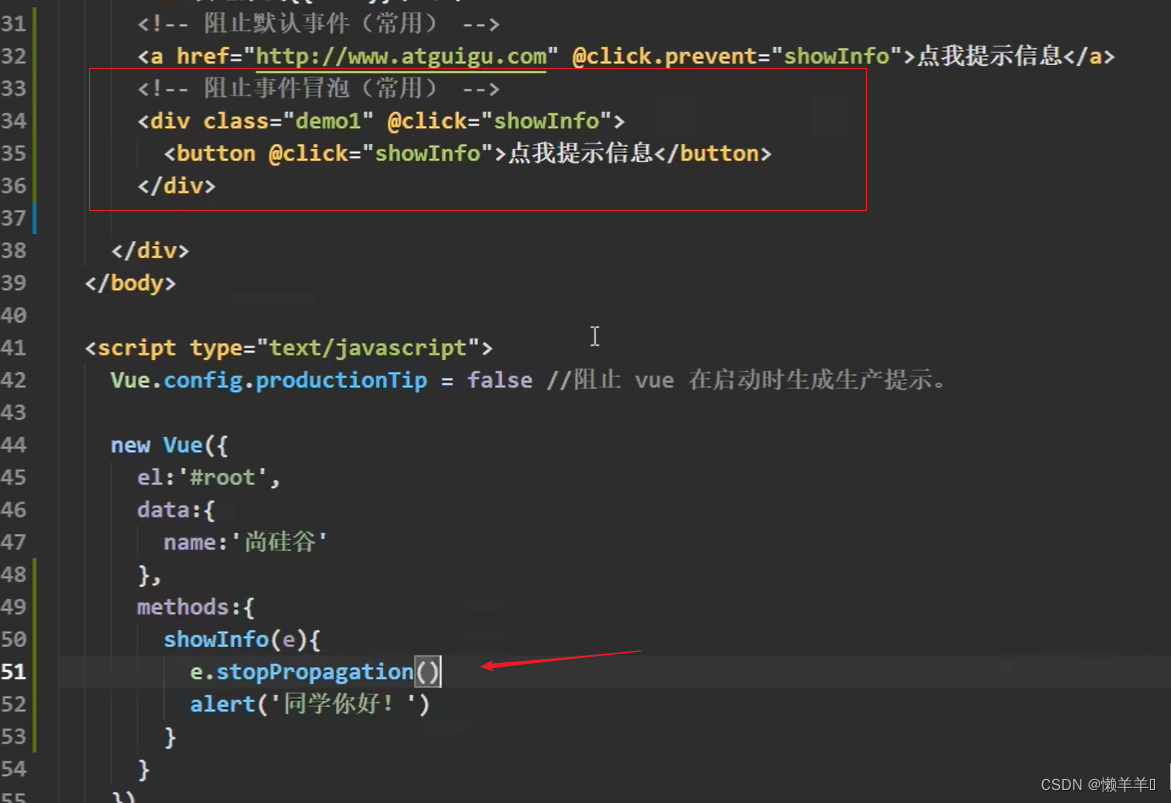 效果就是当点击button按钮的时候,会提示信息两次,这时就可以使用stopPropagation修饰符
