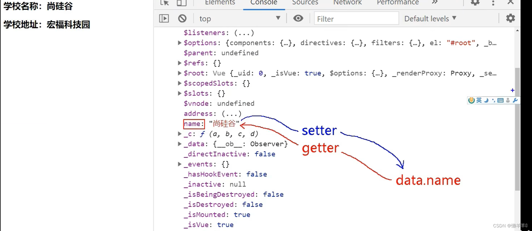 页面上是没有任何内容的,但是console下会有两个小提示: