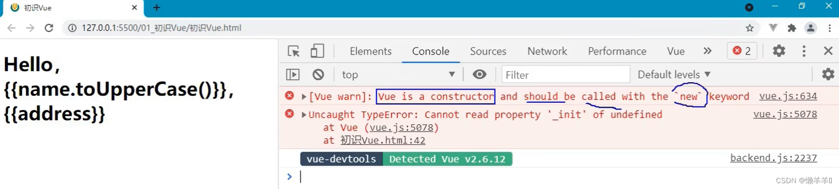 实例化vue需要用到new关键字,如果不小心去掉了这个new关键字,如果引用的是开发版本的vue就会报错: