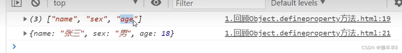 Object.Key这个方法传入一个对象 ,可以把对象的属性提取出来变成一个数组,上图中age是直接写的,所以可以拿到age这个属性